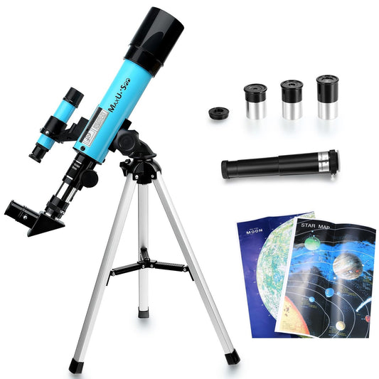 70mm Telescope for Kids & Astronomy Beginners, Refractor Telescope with Tripod & Finder Scope, Portable Telescope with 4 Magnification eyepieces & Phone Adapter Blue